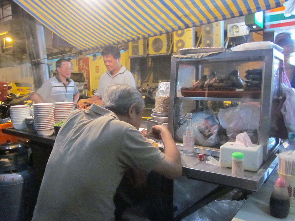 幾位大叔一起顧攤,年約50上下,不清楚他們之間的關係,但彼此默契十足,點餐、切菜、煮麵分工合作,動作迅速,還三不五時與顧客討論MLB賽事。